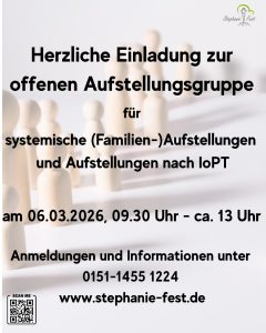 Am 16.01.2026 von 9.30 Uhr bis etwa 13/13.30 Uhr biete ich eine offene Aufstellungsgruppe an.